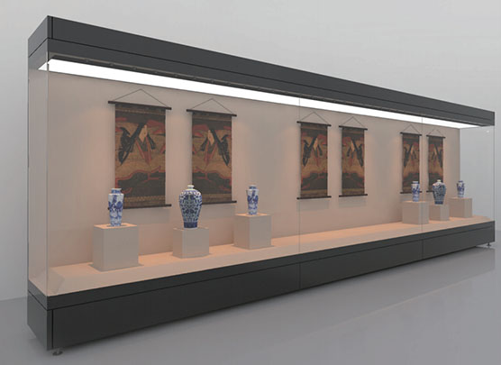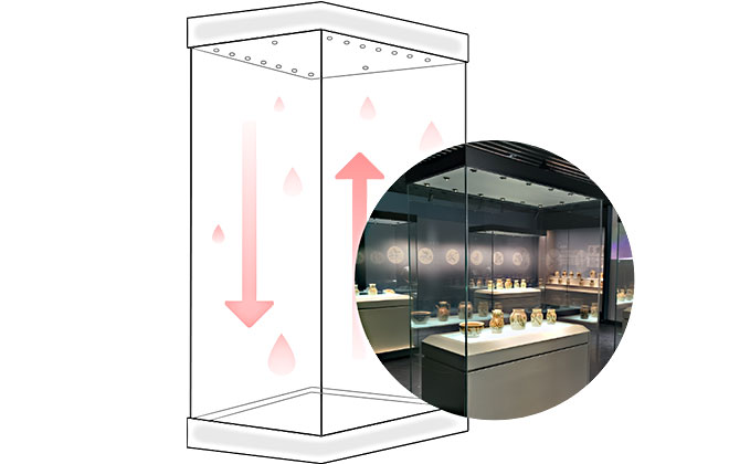 包括恒濕系統和(hé)空(kōng)氣淨化(h→₹uà)系統。濕度準确地(dì)控制(zhì)在±1.5%設定範圍內(nèi),•÷®♥正壓空(kōng)氣調節及過濾可(kě)防止污染微(wēi)粒流入展櫃>÷